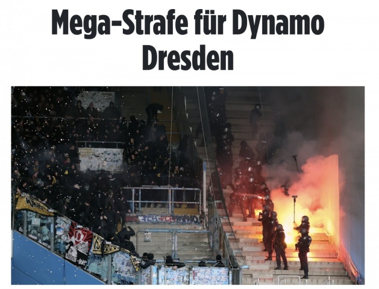 官方:球迷暴力行为致多名警察受伤,德累斯顿迪纳摩被重罚11万欧